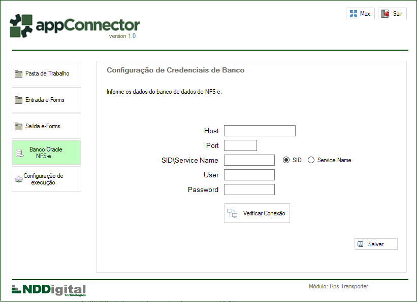 Para o correto funcionamento, deve-se configurar os seguintes campos: