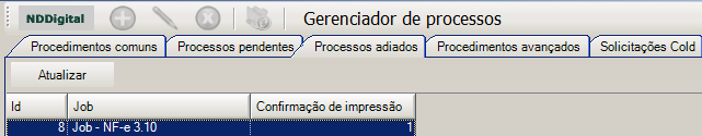 Passo 2: Se desejar recolocar para processamento qualquer um dos processos adiados, deve-se clicar sobre o Job desejado e marcar os checkboxes em Ações. Pode-se também especificar quantos dos processos adiados devem ser processados. Clique em