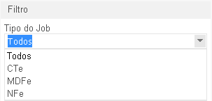 Esse filtro permite ao usuário escolher qual tipo de job será apresentado no campo job do e-Monitor. Para efetuar uma pesquisa por Tipo de Job, selecione o Tipo de Job desejado e clique em Pesquisar. É através deste filtro que ficará disponível as opções do filtro Jobs.