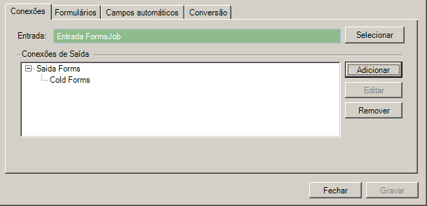 Como o Job configurado é do tipo Forms, a primeira conexão selecionada deverá ser a conexão de saída Forms.