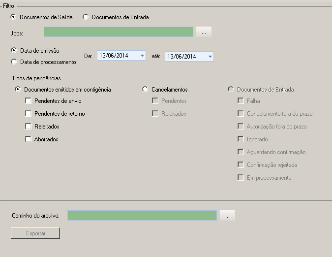 a.Documentos de Entrada ou Documentos de Saída: Selecione o tipo de documento que corresponderão aos Job(s) exibidos.