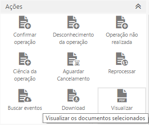 A ação Visualizar, disponibiliza na aba de "Documentos de Entrada" os documento em PDF no e-Monitor.