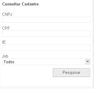 Os filtros são responsáveis por consultar o cadastro na SEFAZ após acionar o botão pesquisar.