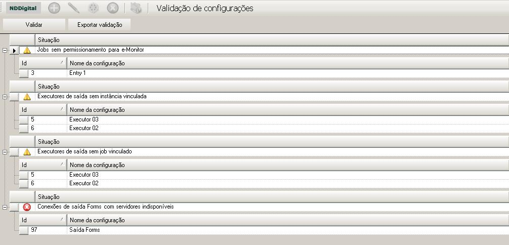 d.Quando expandido, o grid de cada situação lista o identificador e o nome da configuração em questão, conforme a tela abaixo: