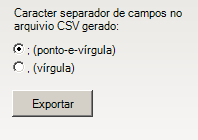 g.Nesta aba é possível ainda exportar relatórios dos certificados listados no grid. Para isto, selecione o caractere separador de campos no arquivo CSV a ser gerado (vírgula ou ponto-e-vírgula) e clique em