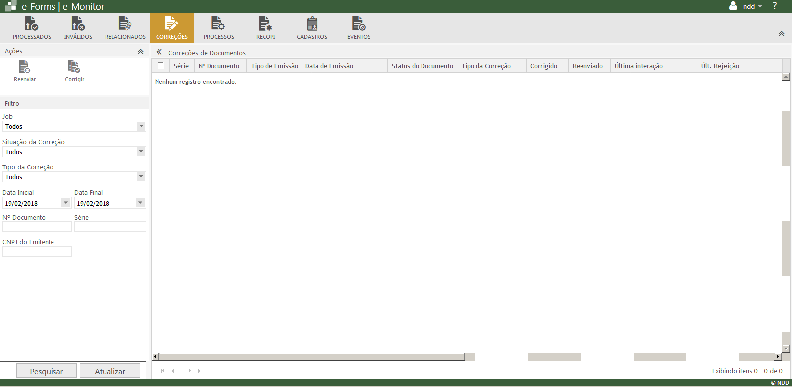 Nesta aba são exibidos todos os documentos rejeitados, que estarão disponível para a correção.