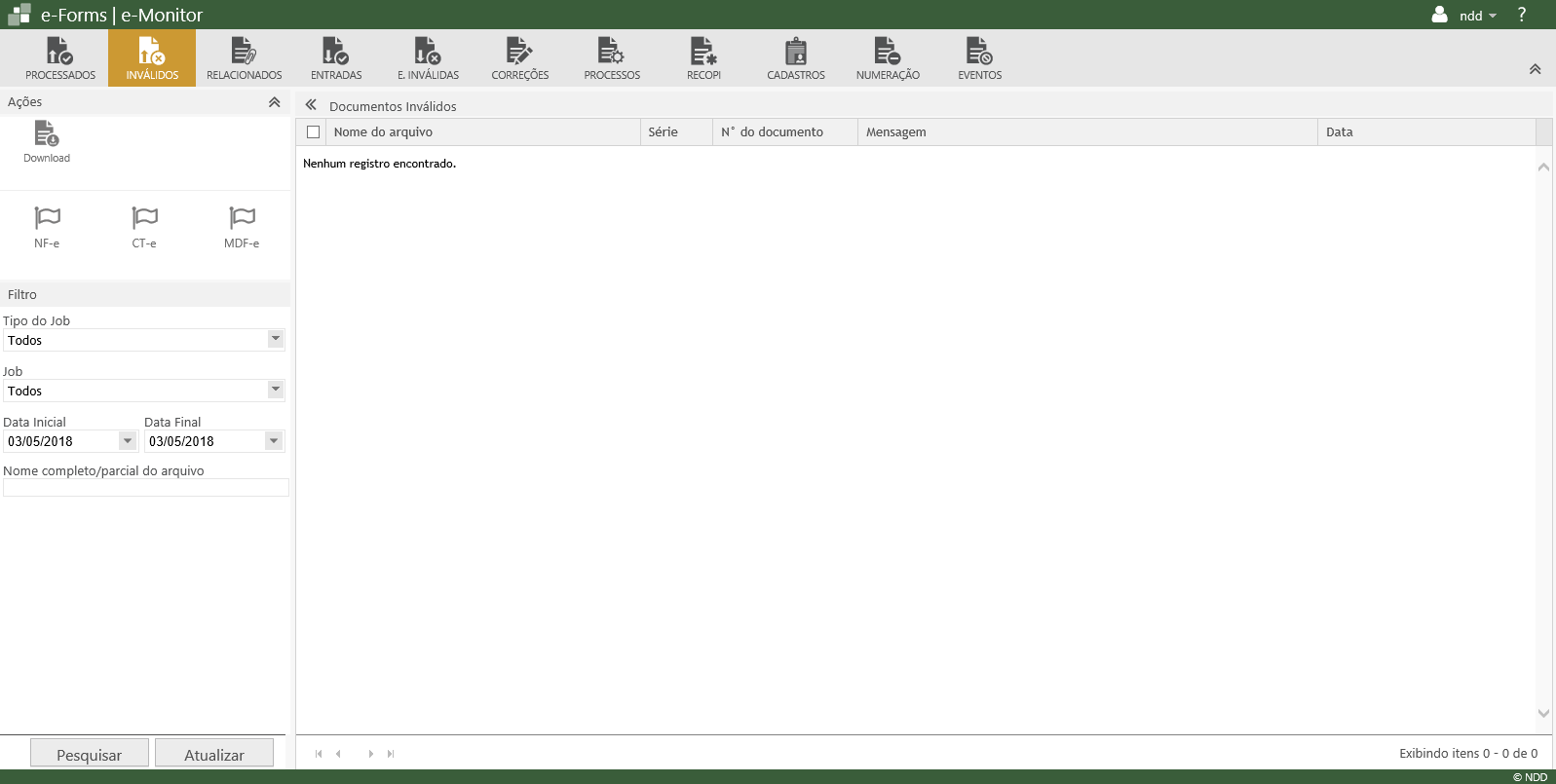 Nesta aba são exibidos os documentos capturados que apresentarem problemas de validação.