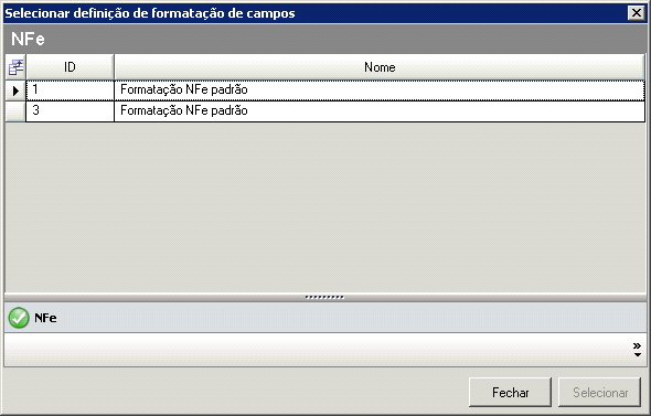 para selecionar uma Formatação de Campos NF-e previamente cadastrada. A imagem abaixo será exibida: