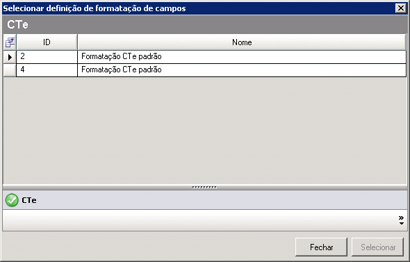 para selecionar uma Formatação de Campos CT-e previamente cadastrada. A imagem abaixo será exibida: