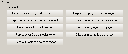Reprocessar recepção de autorização: Reenvio dos documentos de recepção, ou seja, o reprocessamento dos documentos de autorização.