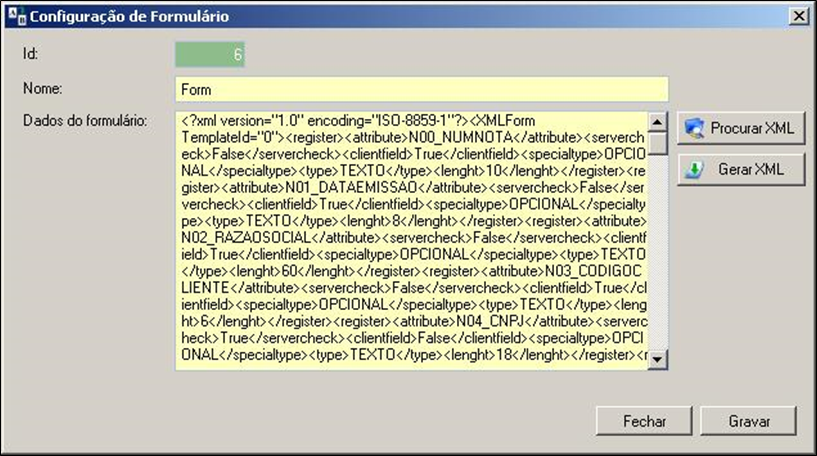 Selecione o campo identificador desejado e clique em Selecionar, será criado o XML Form, como mostra a imagem abaixo.