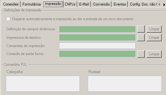 "Impressora Destino", impressora configurada onde será realizada a impressão direta ou comandada pro job de entrada;