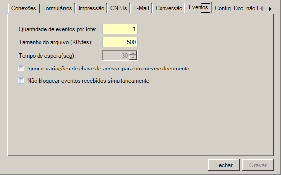•Este campo é desabilitado quando o campo Quantidade de eventos por lote possuir o valor 1.