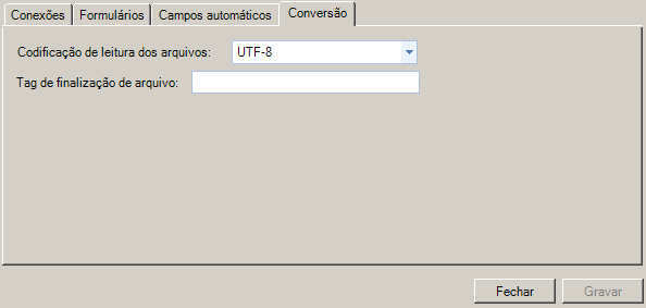 27. Codificação de leitura dos arquivos: Selecione a codificação de caracteres utilizada pelo arquivo gerado pelo ERP. Por padrão a opção está como UTF-8, porém pode ser selecionado como Default ou Unicode.