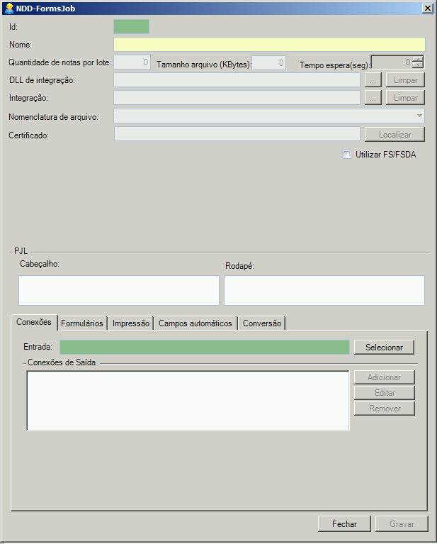 Como o Job configurado é do tipo Forms, a primeira conexão selecionada deverá ser a conexão de saída Forms.