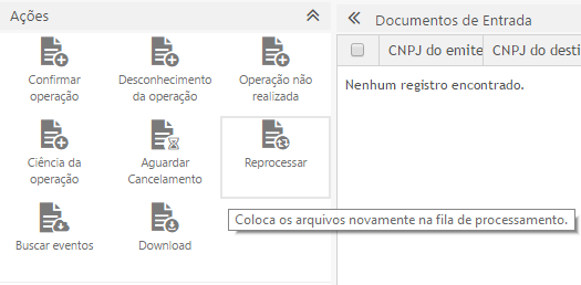 Viabiliza o reprocessamento de documentos que, por algum problema de comunicação com a SEFAZ ou outras questões pontuais, não obtiveram o retorno esperado. Esta opção está disponível apenas para as situações de Falha.
