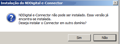 O instalador do e-Connector faz a verificação se a versão que está instalada é a mesma versão que está sendo executada pelo instalador. A tela abaixo será exibida. Caso deseje instalar em outro domínio, clique em Sim.