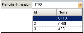 Formato de Arquivo: Formato correspondente à codificação dos arquivos (UTF8, ANSI e ASCII).