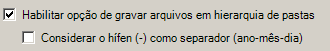 j.A opção habilitar opção de gravar os arquivos em hierarquia de pastas, quando marcada, irá criar subdiretórios dentro do repositório padrão, com a nomenclatura de <ano>\<mês>\<dia> e irá ativar a opção Considerar o hífen (-) como separados (ano-mês-dia), onde quando marcada a nomenclatura dos subdiretórios possuirá o seguinte padrão <ano>-<mês>-<dia>. Caso a opção não estiver marcada, todos os arquivos serão gravados diretamente no diretório do Repositório Padrão.