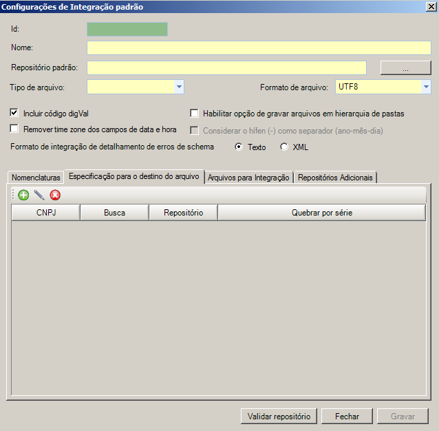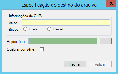 •Repositório: Onde deve ser indicado o diretório em que arquivos separados serão salvos. Caso não seja encontrado o CNPJ cadastrado, será utilizado o diretório padrão.