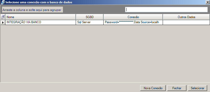 abrirá uma nova janela permitindo selecionar uma conexão com banco de dados pré-cadastrada. A tela abaixo será exibida: