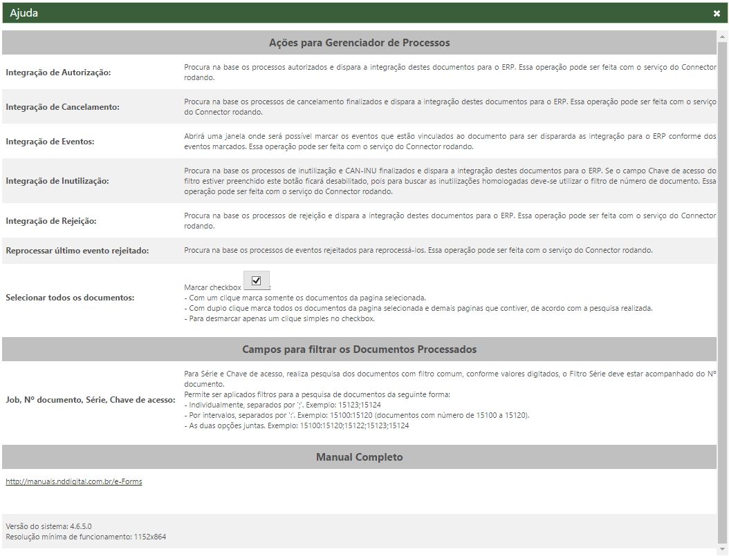 A opção de ajuda está disponível para o e-Monitor o mesmo pode ser acessado efetuando um clique no simbolo de ?.