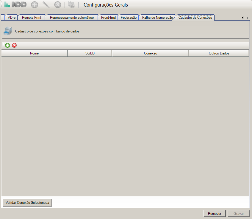 d.Ao acionar o botão Validar Conexão Selecionada, poderá ser realizado uma validação da conectividade com o banco.