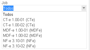 O filtro Jobs é utilizado para filtrar os documentos conforme o Job selecionado. Para efetuar uma pesquisa por Jobs, selecione o Job desejado e clique em Pesquisar. Estarão disponíveis as opções Todos e os demais Jobs que tenham recebido permissão de acesso para o usuário em questão, através do e-Connector.