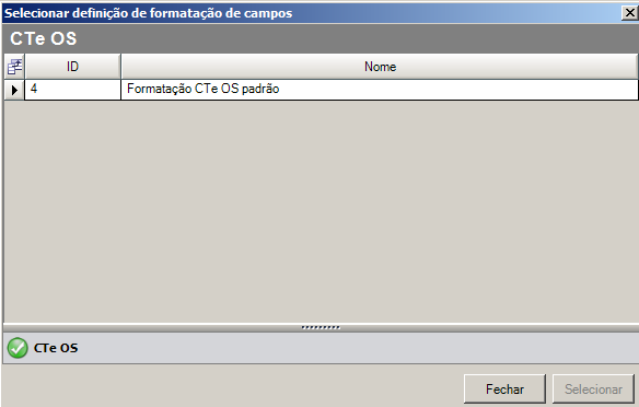 para selecionar uma Formatação de Campos CTeOS previamente cadastrado. A imagem a baixo será exibida: