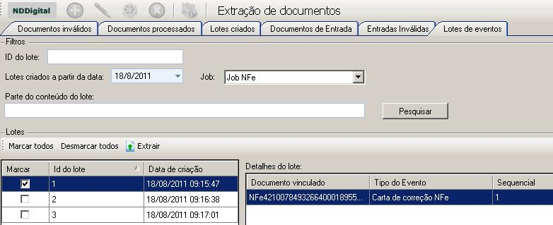 c.Selecione o lote que deseja extrair do banco e em seguida clique em Extrair para selecionar o diretório onde será salvo o arquivo.