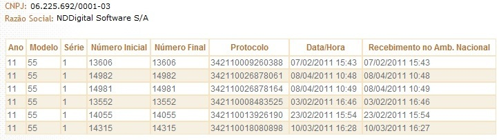 d.Aparecerá um grid com todas as inutilizações homologadas para o CNPJ e ano em questão. Segue abaixo o grid: