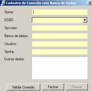 g.caso não exita nenhuma conexão com banco de dados pré-cadastrada ou a conexão desejada não esteja entre as selecionáveis, clique em "Nova Conexão", e a tela a baixo será exibida: