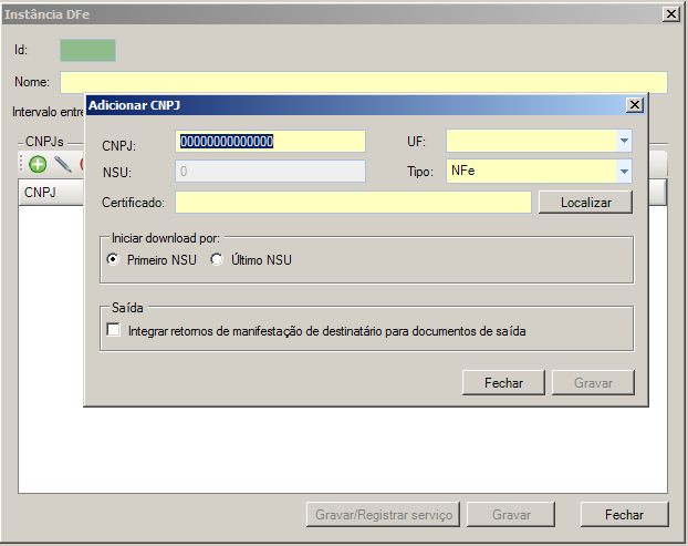para adicionar um CNPJ, então a seguinte tela será exibida:
