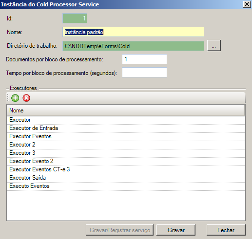 Em bases de processamento Oracle não é permitido cadastrar novas instâncias do Cold Processor Service, é permitido apenas à instância padrão.