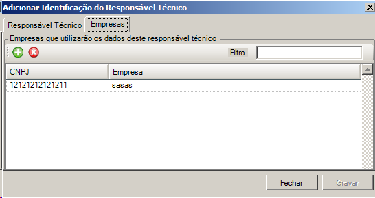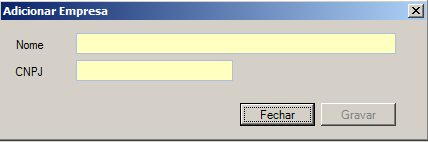 Preencha com o nome da empresa e com o CNPJ e posterior efetue um clique em Gravar. Voltará para a tela abaixo: