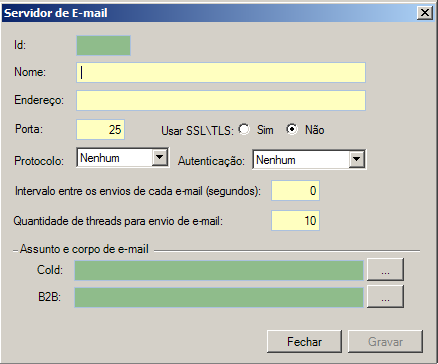 j.Selecione Assunto e corpo do e-mail, já configurados, para serem utilizados no envio de e-mail pelo e-Cold Web ou B2B.
