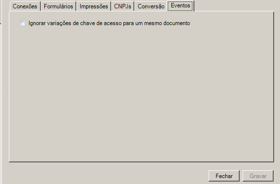 Esta opção será utilizada quando contiver variações na chave de um mesmo documento, ou seja, os documentos não serão bloqueados por terem caído para processamento com chave de acesso diferente da anteriormente processada. Porém se a opção estiver desmarcada, a aplicação do e-Forms não irá ignorar a variação e será bloqueado o documento.
