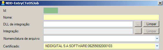 Chave do Job: permite que a mesma tabela no banco de dados seja utilizada por mais de uma entrada baseada em base de dados. Para que isso seja possível, o campo deverá conter um valor determinado pelo ERP, para diferenciar os arquivos de cada ponto emissor.