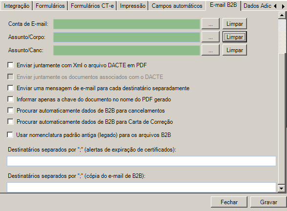 As opções presentes na aba de B2B estão interligadas, verificar cuidadosamente todas as opções marcadas ou selecionadas para o correto recebimento do e-mail com os arquivos desejados. |