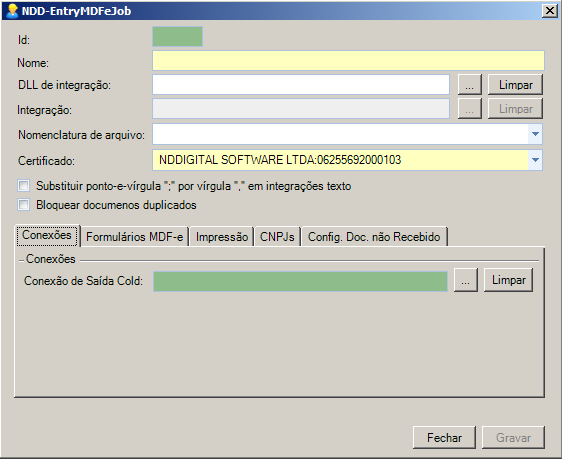 k.Na aba Conexões, selecione a saída cold onde os MDF-e serão armazenados.