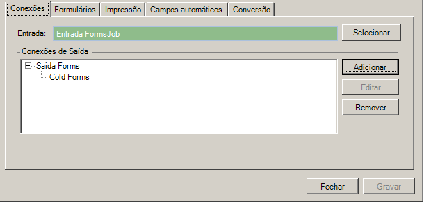 Como o Job configurado é do tipo Forms, a primeira conexão selecionada deverá ser a conexão de saída Forms.