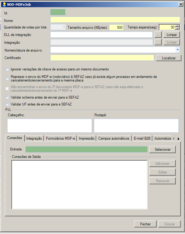 Como está sendo configurado um Job do tipo MDF-e, a primeira conexão selecionada deverá ser a conexão de saída MDF-e.