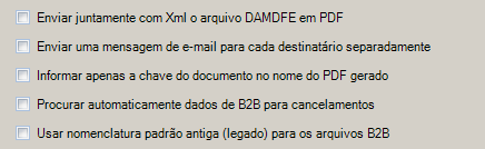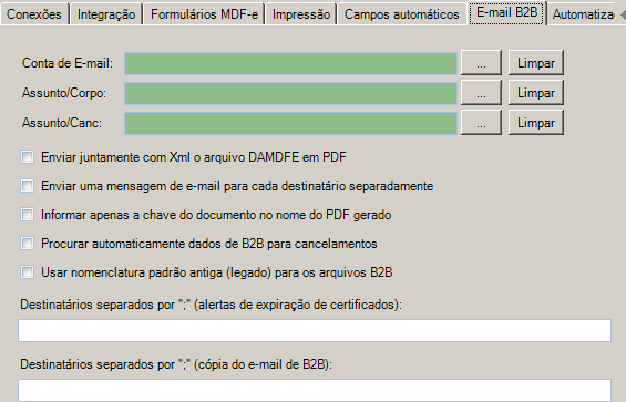 As opções presentes na aba de B2B estão interligadas, verificar cuidadosamente todas as opções marcadas ou selecionadas para o correto recebimento do e-mail com os arquivos desejados. |
