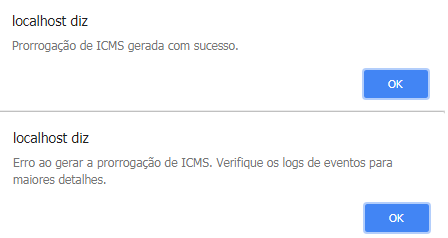 A ação "Criar Prorrogação" tem a finalidade de gerar eventos de prorrogação de ICMS através do portal web e-Monitor.