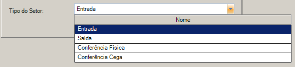 e.Selecione o tipo de Setor, sendo Entrada, Saída, Conferência Física ou Conferência Cega.