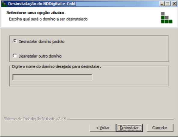 Desinstalar outro domínio: Deve ser preenchido o campo "Digite o nome do domínio para desinstalar", onde o nome informado será o domínio a ser desinstalado.