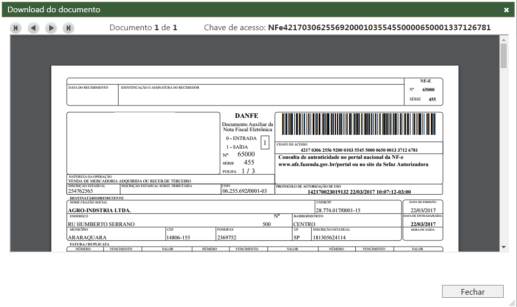 A ação Visualizar, disponibiliza na aba de "Documentos de Entrada" os documento em PDF no e-Monitor.