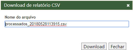 Ao dar duplo clique no check box principal para selecionar todas as páginas ao mesmo tempo, clicando em Exportar CSV será apresentada a janela a baixo, porém será gerada uma solicitação de Download para a exportação: