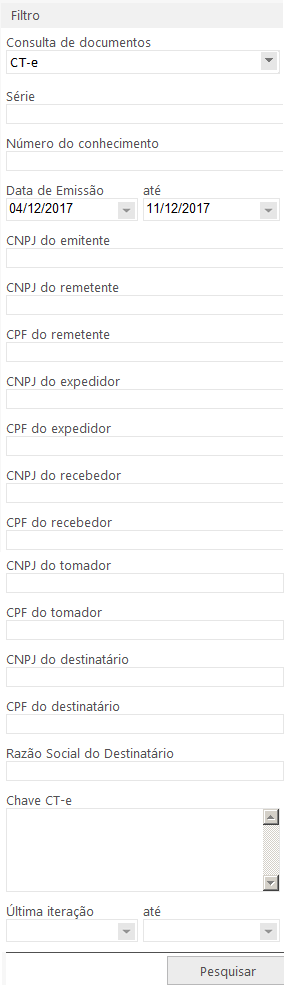•No campo CNPJ do Expedidor, é possível realizar a pesquisa por CNPJ do expedidor correspondendo aos 14 digito ou então por CNPJ raiz 8 digito.