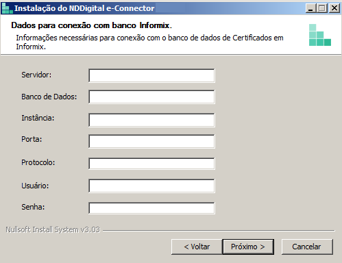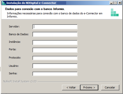 Passo 4: Informe os dados de conexão com o banco de dados do Connector;